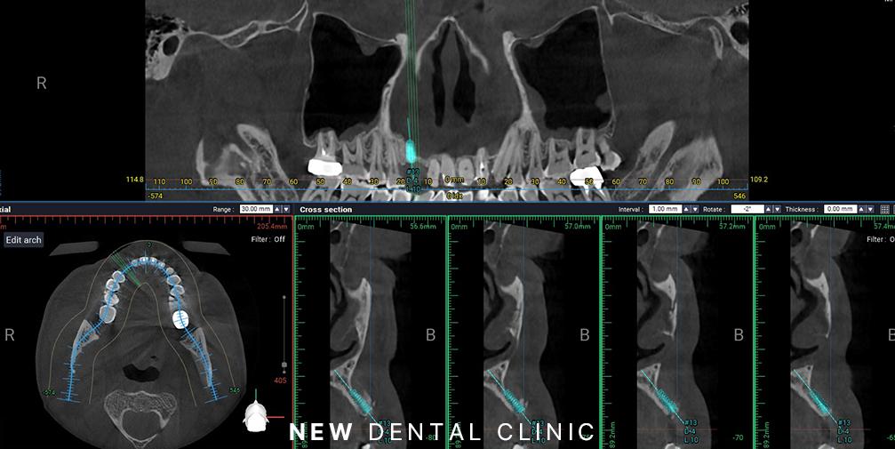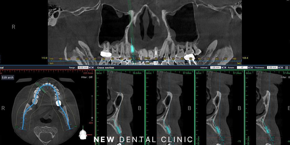 발치와 보존술 후에는 한 달 주기로 하여 치유 정도를 확인해 보았습니다. 약 4개월 후 임플란트 수술을 시작했는데요. 식립 수술 전에는 미리 CT 촬영을 시행하여 잇몸뼈의 상태와 함께 가장 알맞은 식립 위치를 예측해 보았습니다.