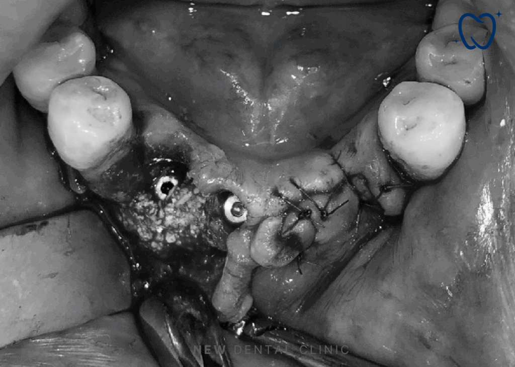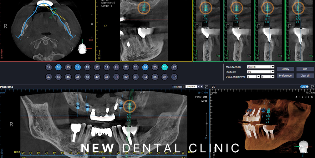 수술 시작 전 가장 적절한 인공 치근 식립 위치를 결정하기 위해 3D CT 촬영을 동반한 분석 과정이 진행되었습니다. 이후 해당 결과에 맞게 수술이 시행되었는데요. 어금니 부분은 첫 번째 큰 어금니까지만 회복시켜 주기로 치료 계획을 세웠고, 양쪽 모두 각 2개의 인공 치근을 심었습니다.